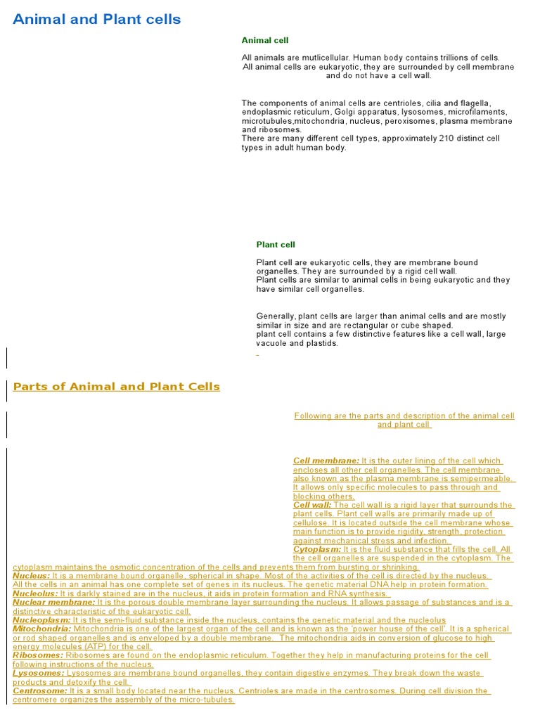 In plant cells vacuoles are full of cell sap and provide turgidity swollen and distended or congested and rigidity to the cell. Vacuoles in animal cells are much smaller. Animal cells have a centrosome and lysosomes while plant cells do not. Feb 06, 2016 · large vacuoles are common in plant cells. In animal cells, vacuoles are generally small. Storing nutrients and waste products, helping increase cell size during growth, and even acting much like lysosomes of animal cells. Plant cells have a cell wall, a large central vacuole, chloroplasts, and other specialized plastids, whereas animal cells do not. Therefore, the nucleus houses the cell's dna and directs the synthesis of proteins and ribosomes, the cellular organelles responsible for protein synthesis. Eukaryotic cells are typically much larger than those of prokaryotes, having a volume of around 10,000 times greater than the prokaryotic cell. Vacuoles tend to be large in plant cells and play several roles: These membranes also regulate the passage of molecules in and out of the cells. Animal cells lack the hard cell wall and chloroplasts that are Vacuoles are storage sacs for solid or liquid contents.