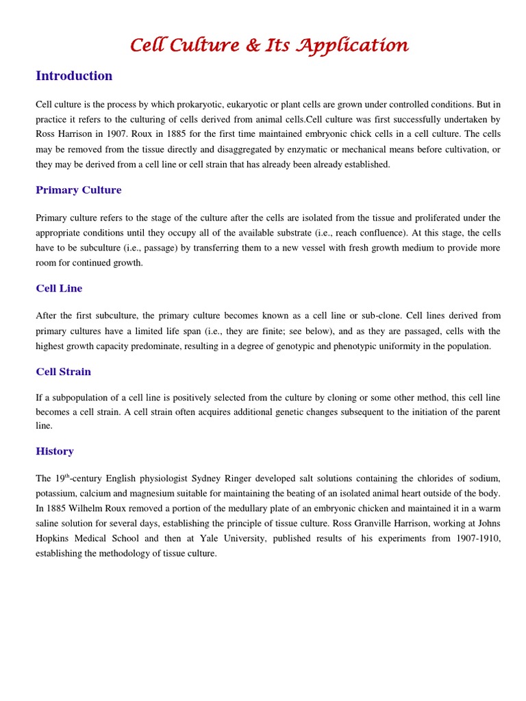 / Application Of Animal Cell Culture Biology Discussion / Conditions and Stages of Tissue Culture (With Diagram) - Advantages of animal cell culture: